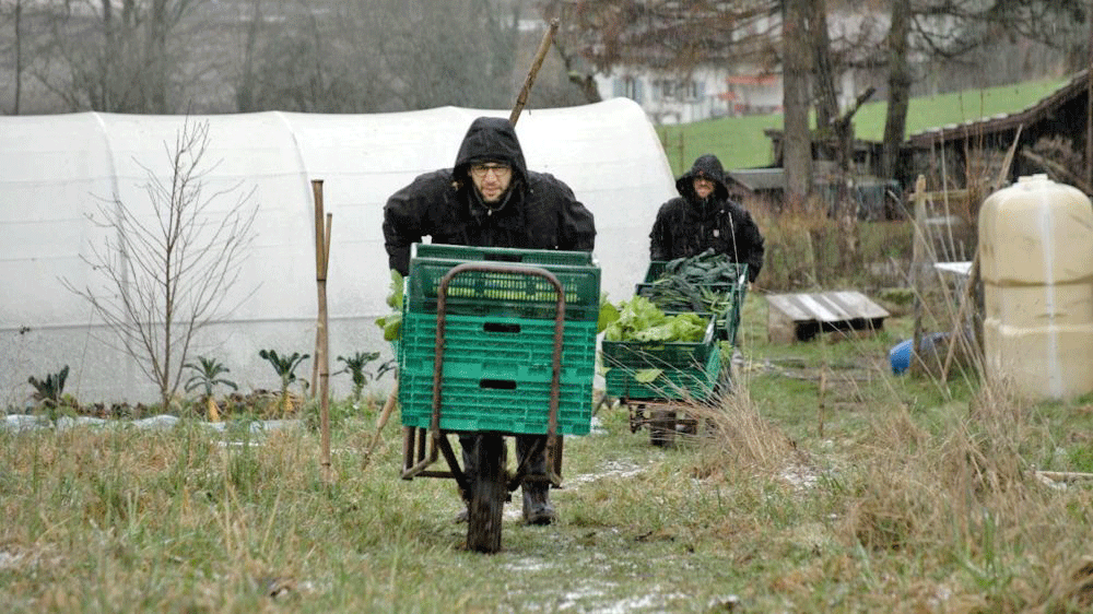 Depuis 3 ans, Pierre-Gilles et Antoine cultivent des légumes de manière entièrement naturelle sur le terrain de Praz Bonjour, situé au-dessus de la ville de Vevey. Ce travail n’est pas de tout repos. Il faut faire face à des menaces quotidiennes : climat changeant, ravageurs, maladies… sans compter la pression financière qui pèse lourd.